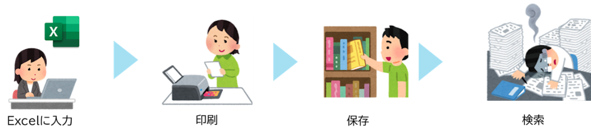 物件をExcelに入力→印刷→紙で保存→共有、確認している。